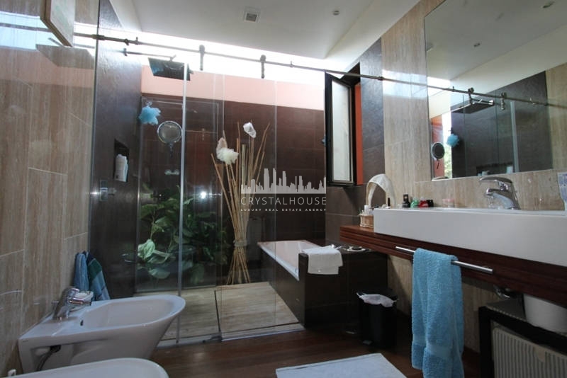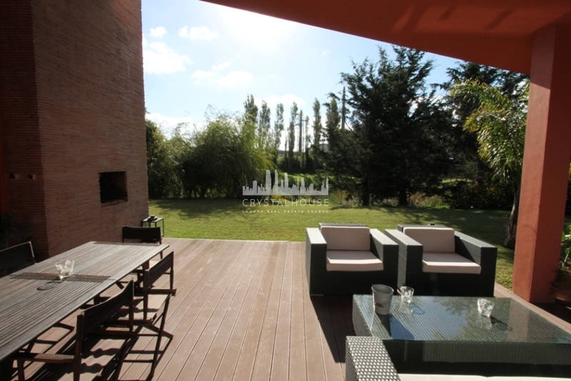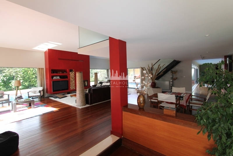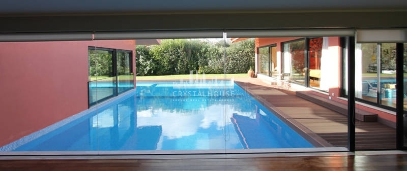 Ta willa o powierzchni 582 m2 na działce o powierzchni 1456 m2 ma 5 sypialni i 7 łazienek, wszystkie zbudowane na jednym piętrze i piwnicy przy użyciu materiałów najwyższej jakości. Posiada 4 apartamenty al z dostępem do basenu oraz korytarz łączący salon i jadalnię zw pełni wyposażoną kuchnią. W piwnicy znajduje się duża sala zabaw z przeszklonym widokiem na basen i wyjściem na zewnątrz. Posiada również pralnię, pokój pokojówki i garaż na 2 samochody. Ma bujny ogród i widoki na jezioro z polem golfowym. Quinta da Beloura to ekskluzywny i luksusowy ośrodek wypoczynkowy z 18-dołkowym polem golfowym zaprojektowanym przez Rocky’ego Rockmore’a, klubem tenisowym, ośrodkiem jeździeckim i klubem zdrowia. W pobliżu znajduje się międzynarodowa szkoła amerykańska, centrum handlowe i supermarket El Corte Ingles. Położone u podnóża Sintry, z całodobową ochroną, znajduje się zaledwie kilka minut od autostrad i dróg prowadzących do Sintry, Cascais i Lizbony.