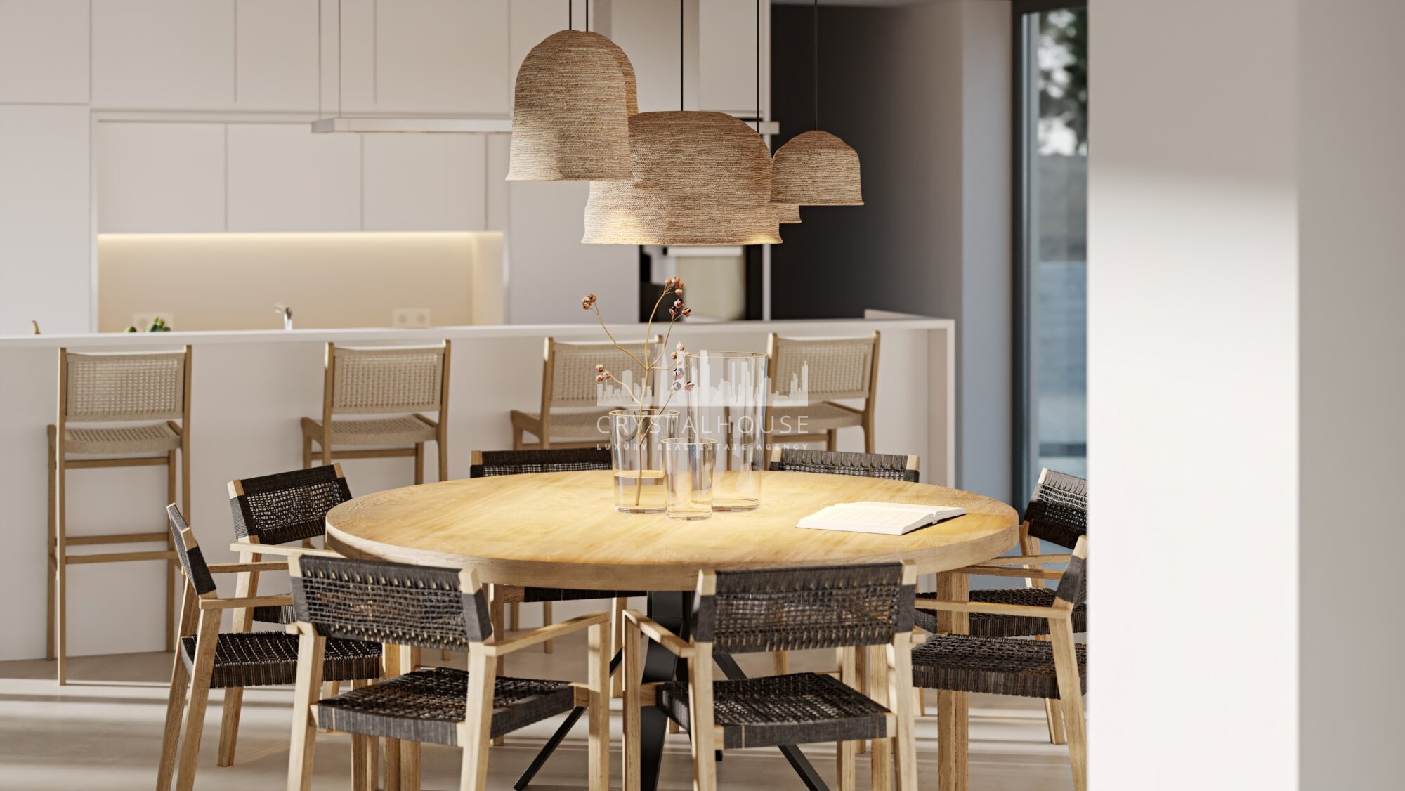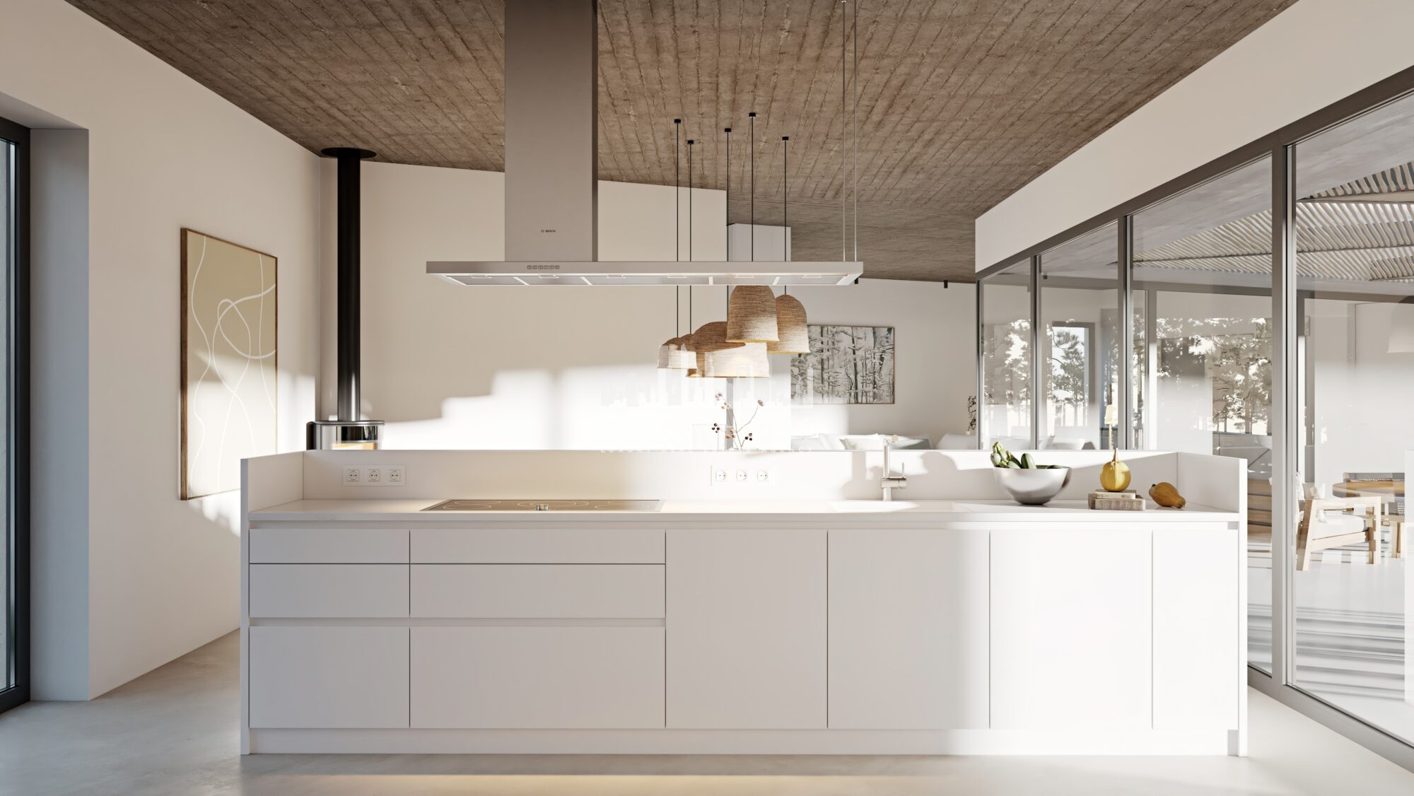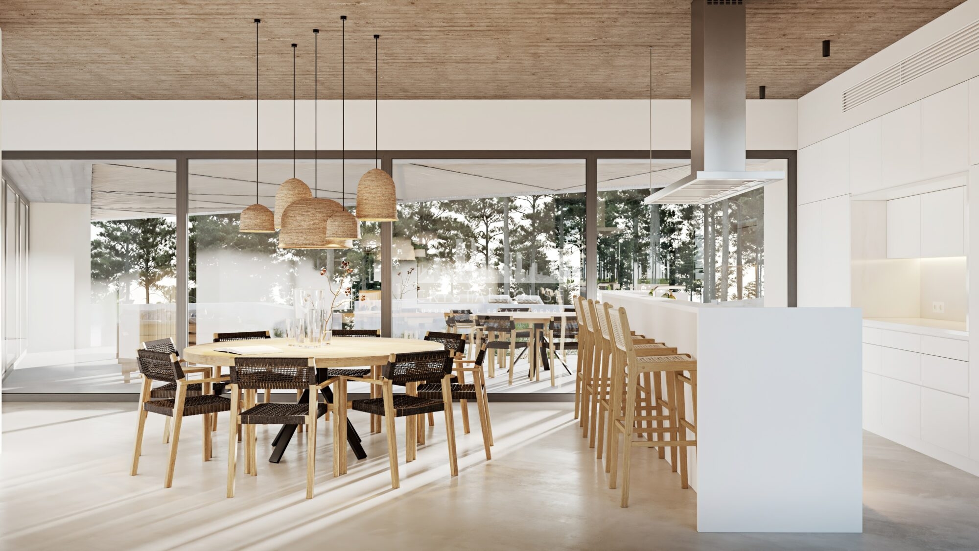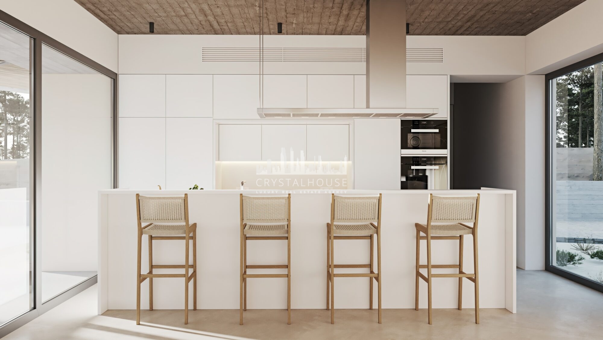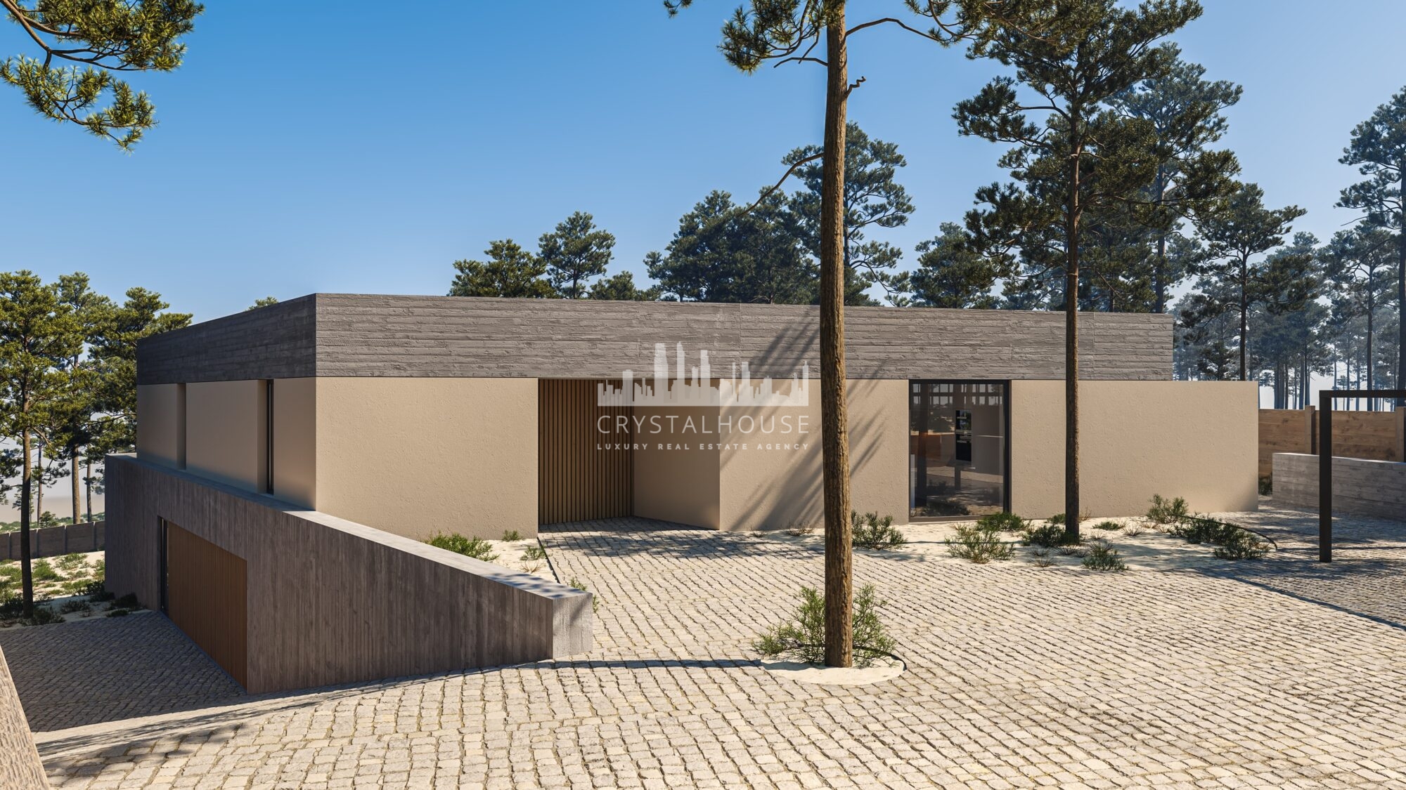 The ground floor comprises a large open-plan kitchen, a dining room, and a living room. It also has a main suite with a private patio. There is also a laundry room, bathroom, and pool support outside. Downstairs, we find a bathroom and three bedrooms, one of which is a suite. There’s also a garage with 36,5 sq.m and a storage area on this floor. Located at the entrance of Carvalhal and 3 km from the coast, this villa is set in a chic and authentic environment, with natural dunes as far as the eye can see.