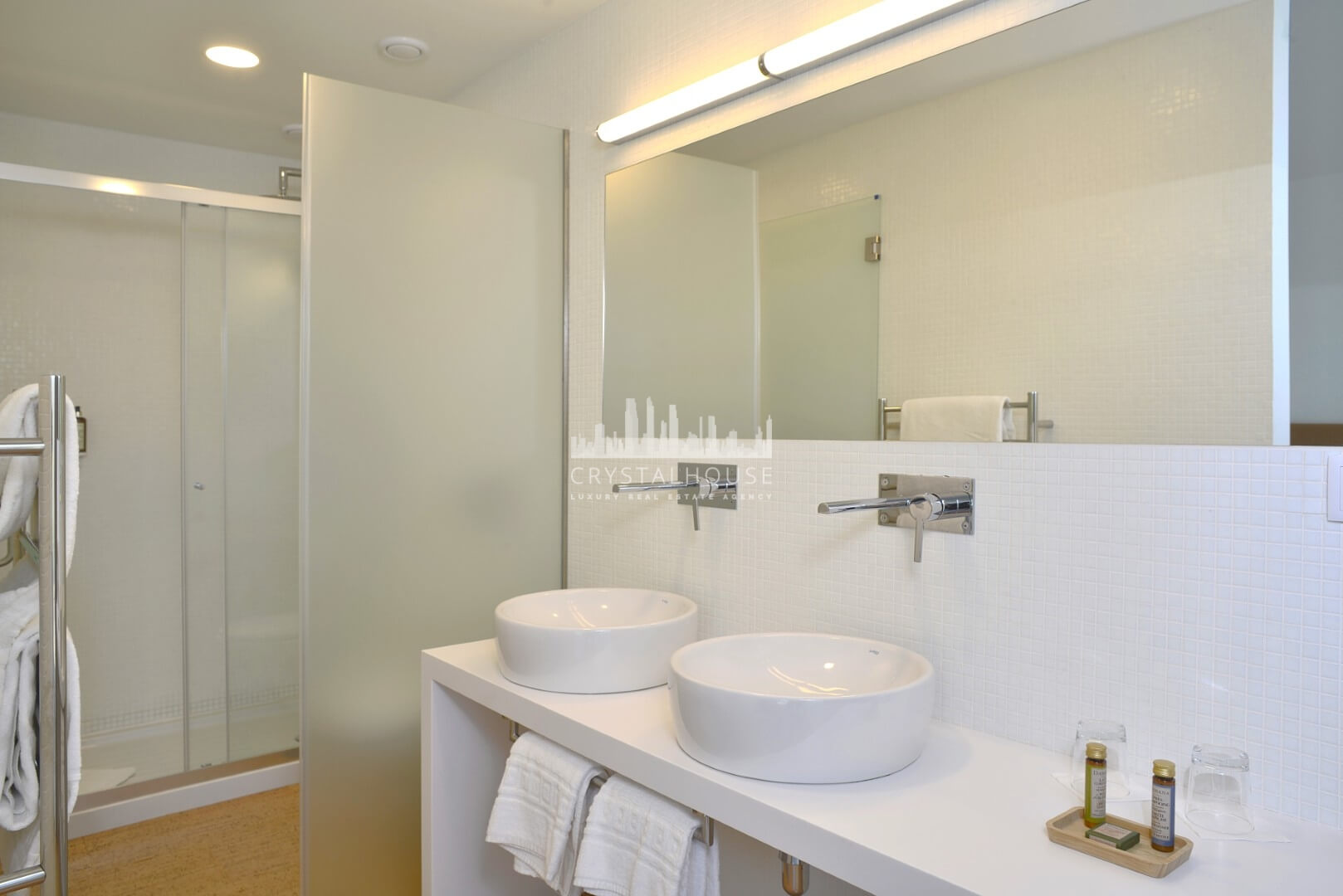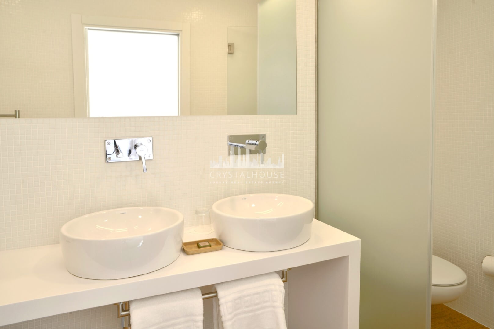 The interior features three elegant suites, each offering a serene and private atmosphere, along with a spacious open-plan living area integrated with the kitchen—perfect for entertaining and relaxing moments. An additional guest bathroom ensures practicality without compromising the refined style of the villa. Fully furnished and equipped with air conditioning and a wood-burning stove, the property guarantees comfort and sophistication all year round.