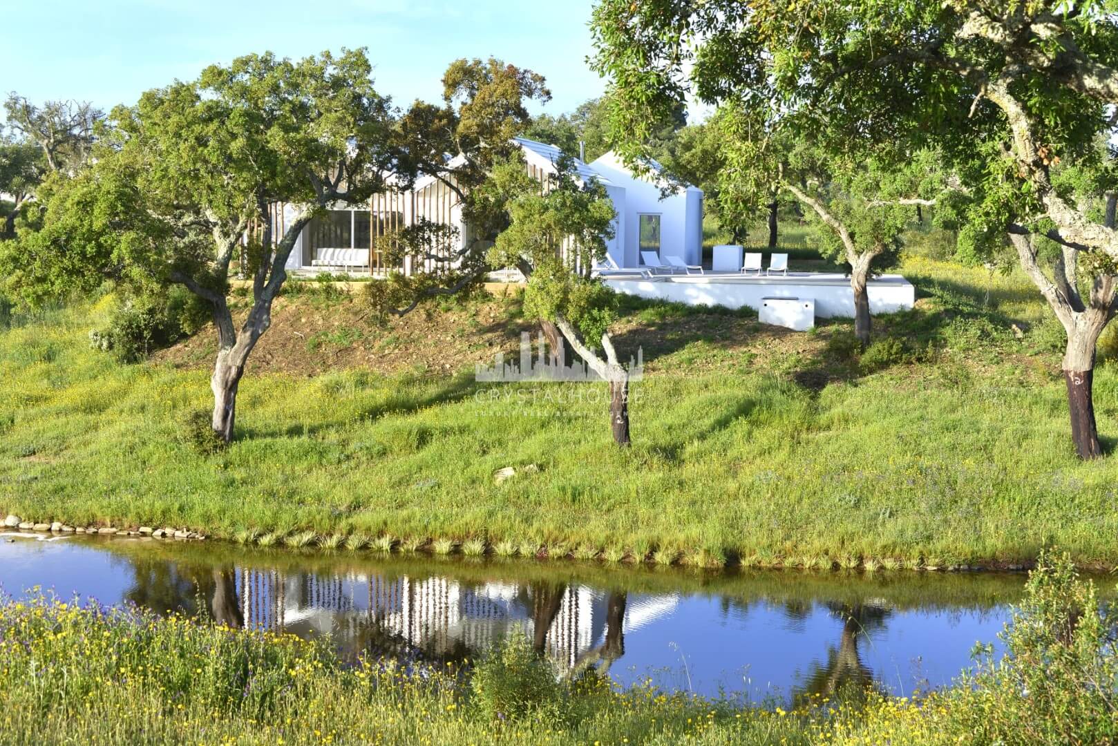 We present this sophisticated 3-bedroom villa, located in the exclusive Sobreiras Country Hotel, a true retreat of tranquility and comfort set in the heart of unspoiled nature, with stunning views over the Alentejo plains. The property sits on a 3,807 sqm plot and offers 166.76 sqm of built area, thoughtfully designed to maximize natural light and create a seamless connection between indoor and outdoor living spaces.