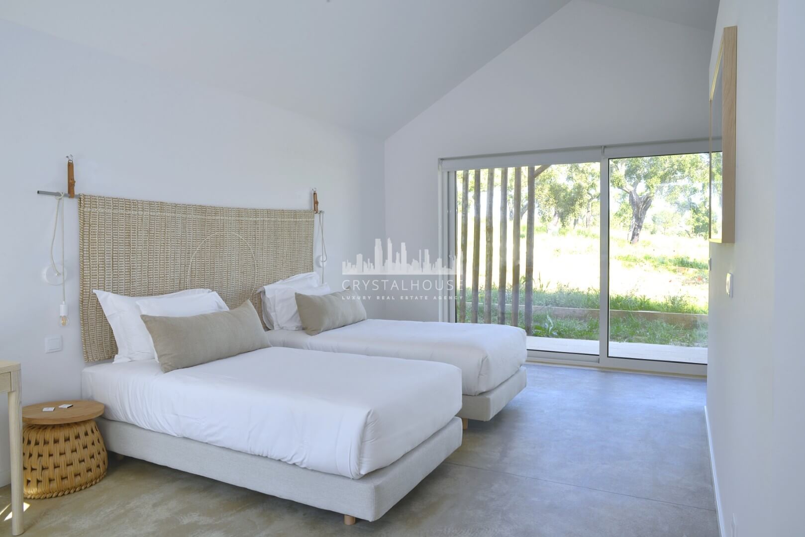 Ta wyrafinowana, nowoczesna nieruchomość położona w sercu dzikiej przyrody to propozycja dla osób poszukujących absolutnego spokoju i autentyczności portugalskiego wybrzeża. Zlokalizowany na terenie ekskluzywnego Sobreiras Country Hotel, ten solidny budynek harmonijnie łączy współczesny design z surowym pięknem krajobrazu, oferując standard życia, który celebruje ciszę i bliskość natury, zaledwie pół godziny drogi od modnego kurortu Comporta.