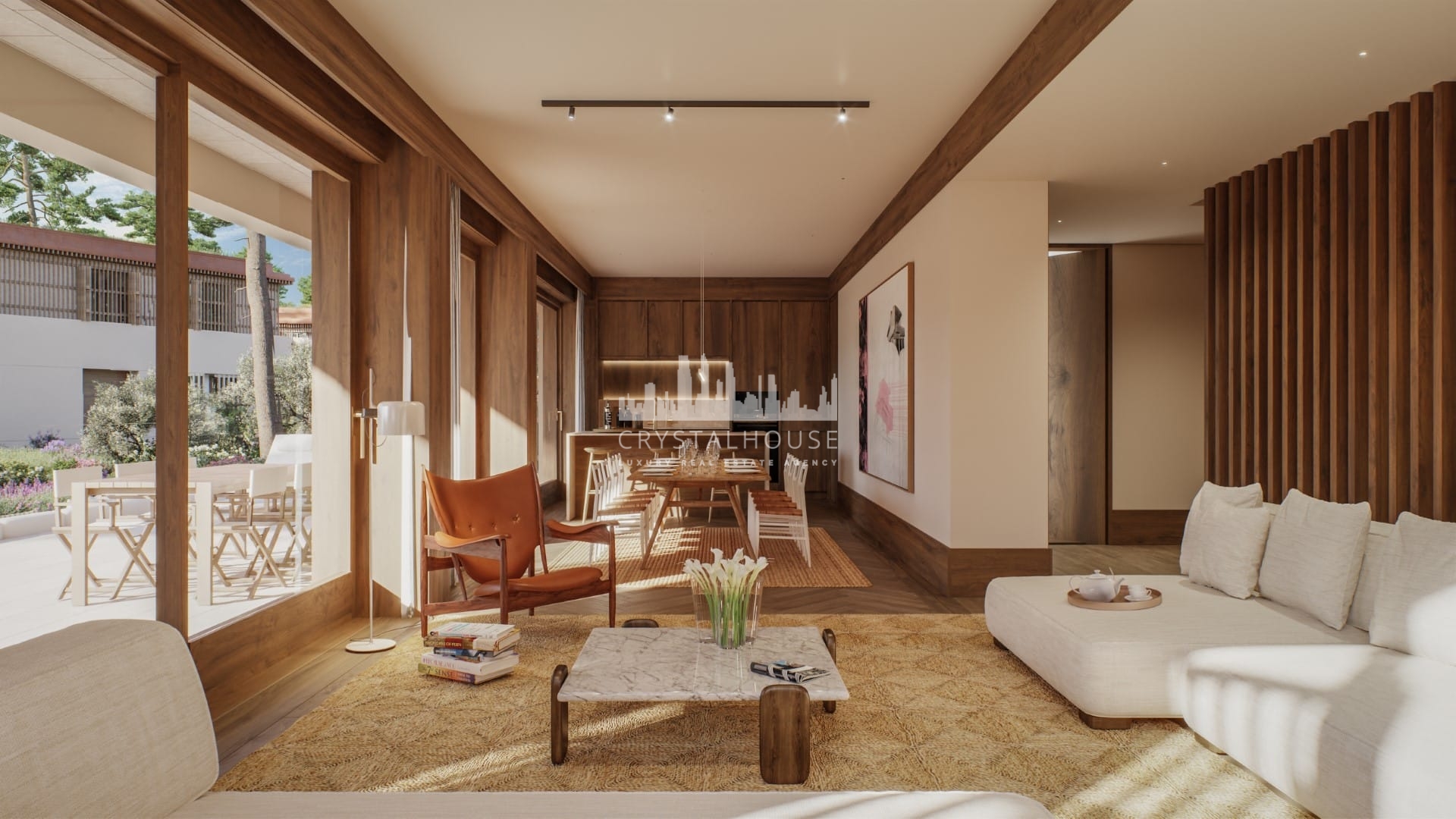 On the main floor, the social spaces open onto the outside, creating a natural continuity between the interior and the terrace. Large living room, dining area, and open-plan kitchen, ideal for those who enjoy entertaining. Private office, TV room, laundry room, wine cellar, and a suite on the ground floor ensure daily comfort and real functionality.