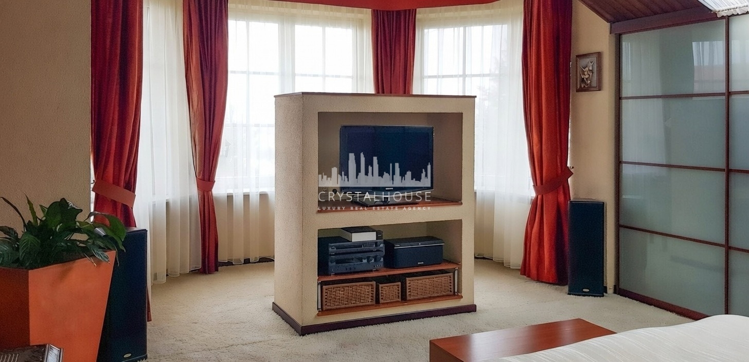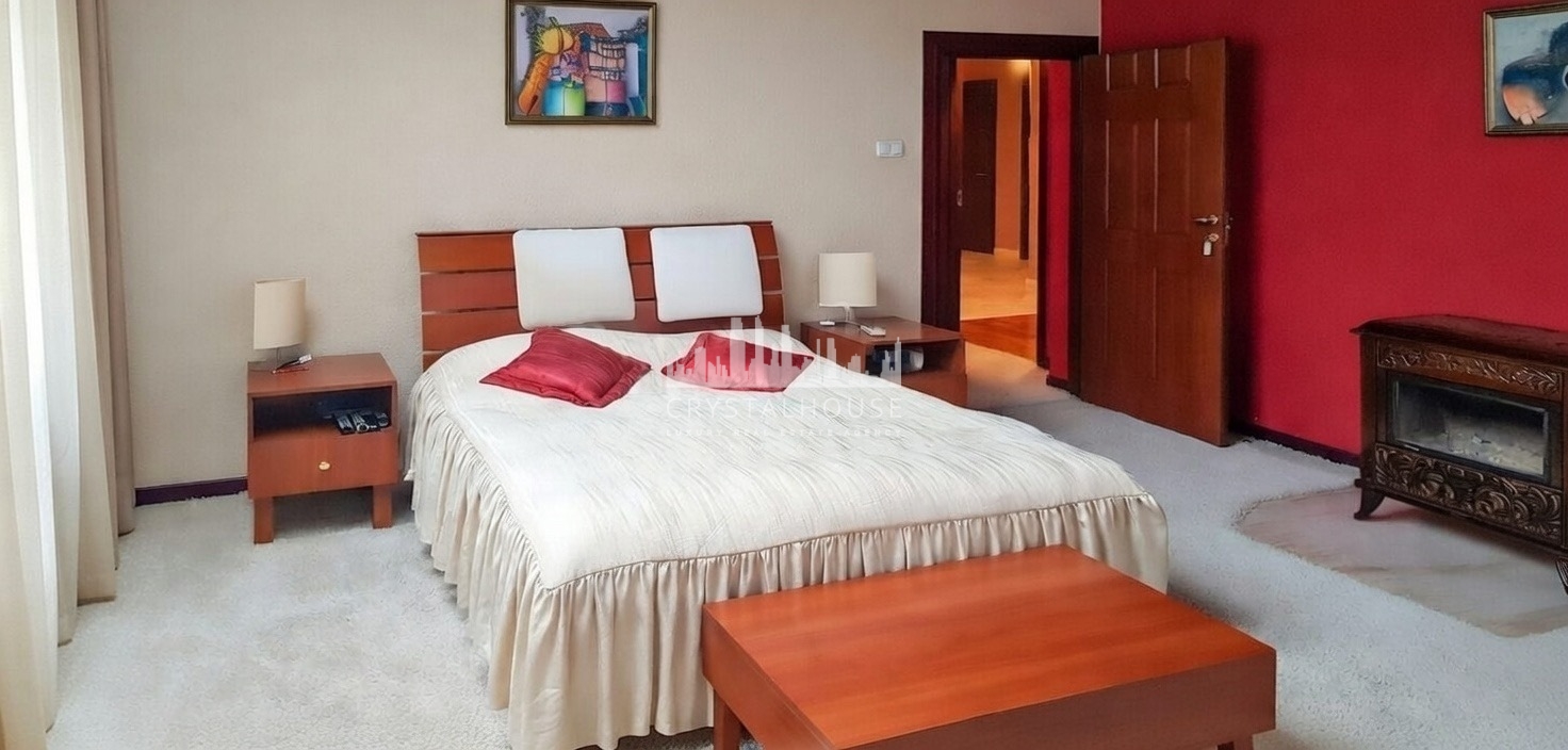 Po udaniu na piętro mamy do dyspozycji 4 sypialnie, w tym master bedroom, o pow. 35m2. Główna sypialnia wyposażona jest w dwie garderoby, toaletkę, ceramiczny, wolnostojący kominek, oraz klimatyzację.