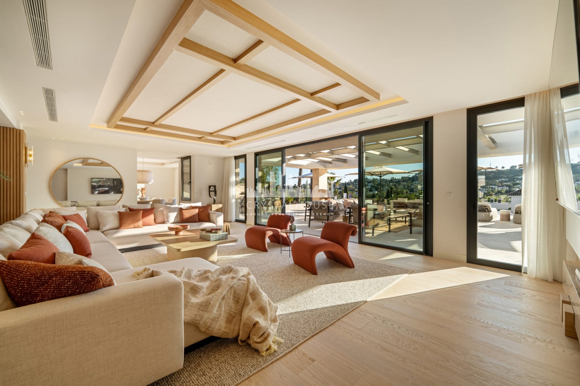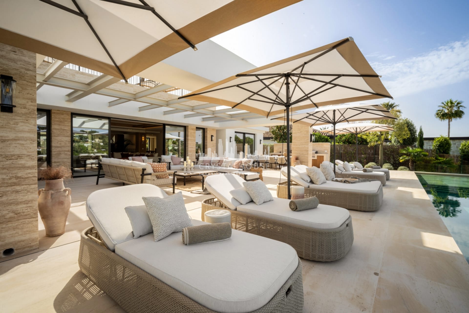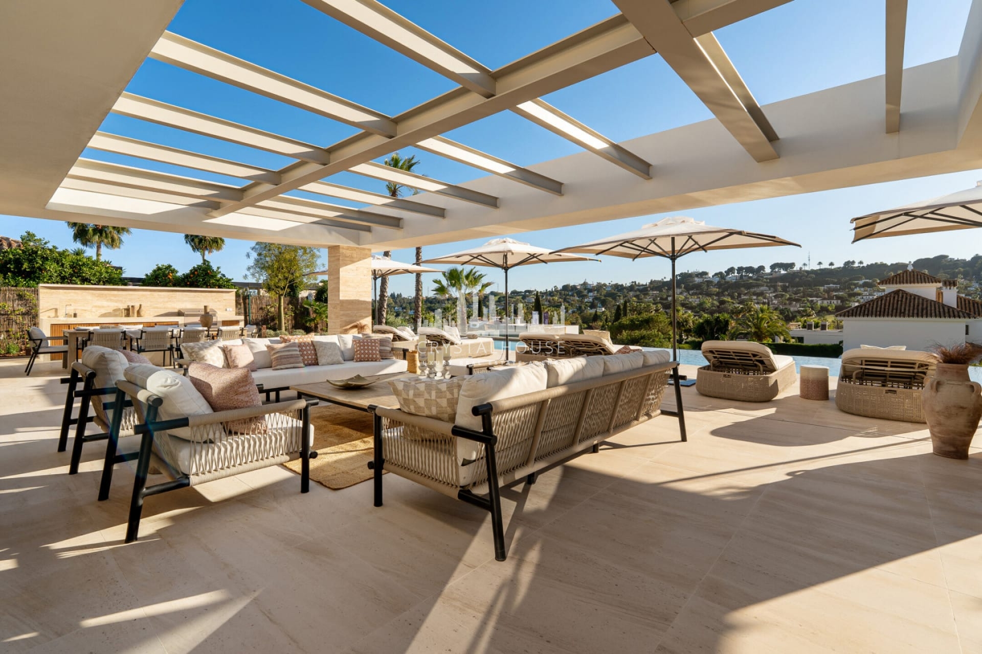 Ta wyjątkowa nieruchomość szczyci się fascynującą architekturą, która harmonijnie łączy naturalne materiały z nowoczesnymi elementami wystroju. Od symetrycznej fasady po bujną zieleń przy wejściu, willa emanuje elegancją i wyrafinowaniem. Ostre linie i przezroczyste okna dodają odrobinę współczesnego stylu, podczas gdy tradycyjne dachówki stanowią ukłon w stronę lokalnej kultury i dziedzictwa. Zaprojektowana przez GC Studio architektura i wnętrza odzwierciedlają wyrafinowaną równowagę między innowacją a tradycją. B. Solis zajął się budową z nienagannym kunsztem, a bujny krajobraz, stworzony przez Juan Pedro Sacedón Paisajismo, podkreśla atmosferę willi. Zaawansowane instalacje domowe zostały wykonane przez Techno Clima, zapewniając najwyższe standardy komfortu i wydajności. Wewnątrz Villa Azteca oferuje gustowny wystrój wnętrz z jasnymi neutralnymi tonami i naturalnymi materiałami. Drewniane akcenty, takie jak żebrowane ściany oddzielające salon od kuchni, dodają przestrzeni ciepła i charakteru. Nieruchomość obejmuje pięć luksusowych sypialni i imponujący salon / jadalnię, idealne do przyjmowania gości lub relaksu z rodziną. Dzięki spektakularnym widokom na pole golfowe, unikalnym dla Aloha w Nueva Andalucía, Villa Azteca jest naprawdę niezwykłą nieruchomością, która oferuje najwyższy luksus życia.
