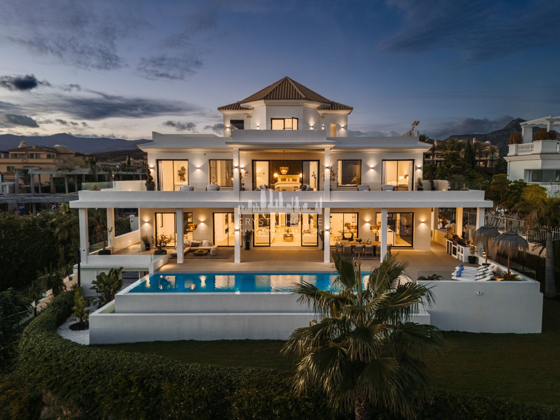 Po wejściu goście witani są eleganckimi spiralnymi schodami ozdobionymi wspaniałym wiszącym żyrandolem, tworzącym urzekającą atmosferę, którą dopełnia zapierający dech w piersiach widok na morze. Na parterze znajduje się jasna, otwarta przestrzeń dzienna połączona z formalną jadalnią i nowoczesną, w pełni wyposażoną kuchnią z centralną wyspą i miejscami do siedzenia. Na tym piętrze znajduje się również spiżarnia, biuro, sypialnia gościnna z łazienką oraz wszechstronne pomieszczenie wielofunkcyjne. Rozległe drzwi przesuwne wypełniają przestrzeń naturalnym światłem, prowadząc do zewnętrznej oazy z przestronnym tarasem, kuchnią na świeżym powietrzu, jadalnią na świeżym powietrzu i luksusowym basenem bez krawędzi.